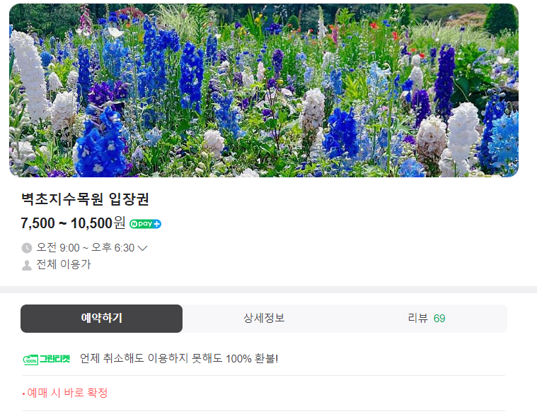 - 벽초지수목원 네이버 예매를 통해서 간편하게 예약할 수 있습니다.